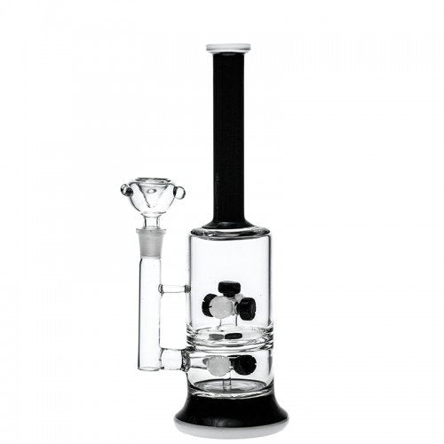 13" Tall Double Circular Seed Perc Rec w/ Silicone Compartment Hand Made 3 Color (Black)